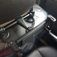 This is really easy to install, and works well with smaller headrests. It is a little hard to pull the arms apart with one hand while you hold the tablet if you need to fully extend the arms.